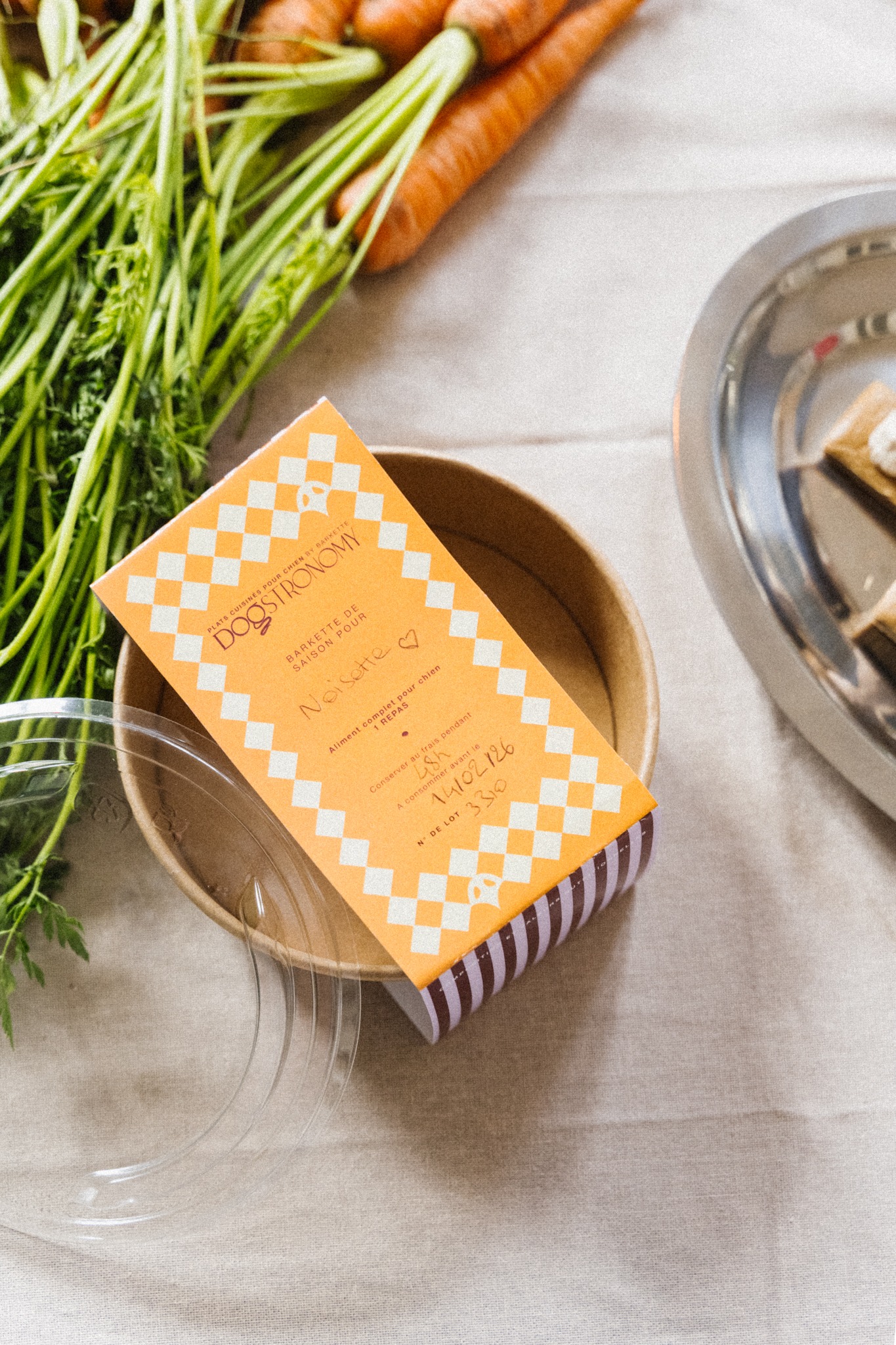On en avait marre de zieuter la carte pour vérifier s'il "n'y auvait pas un truc digeste et pas trop cher à commander" pour notre chien, que le sac a main sente la croquette, et on en avait marre de partir en premier de la soirée avec notre toutou, donc on a crée Barkette.